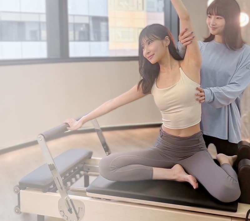 専用マシンのリフォーマーを使うことで少ない負荷で体幹やインナーマッスルを鍛えれるため、身体の変化を実感しやすく気になる部位にも効率的にアプローチが可能